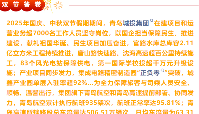 • 935架次,506萬輛次,7000余人在崗……青島城投雙節答卷來了!